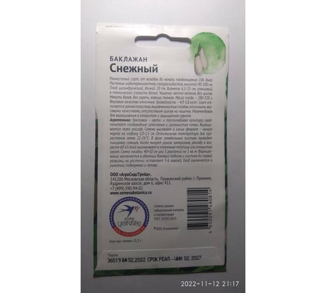 Отзывы о семенах ОКТЯБРИНА ГАНИЧКИНА Баклажан Снежный 0.3 г 120018