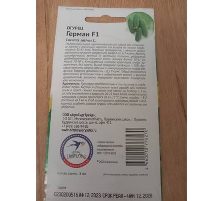 Отзывы о семенах ОКТЯБРИНА ГАНИЧКИНА Огурец Герман F1 8 шт. 120157
