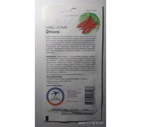 Отзывы о семенах ОКТЯБРИНА ГАНИЧКИНА Перец острый Огонек 0.3 г 120168
