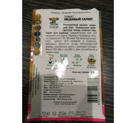 Технические характеристики Агрохолдинг ПОИСК Томат Медовый салют 699790