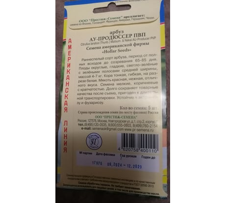 Семена Престиж-Семена Арбуз Продюссер 00009161 подходят для выращивания на дачном участке.