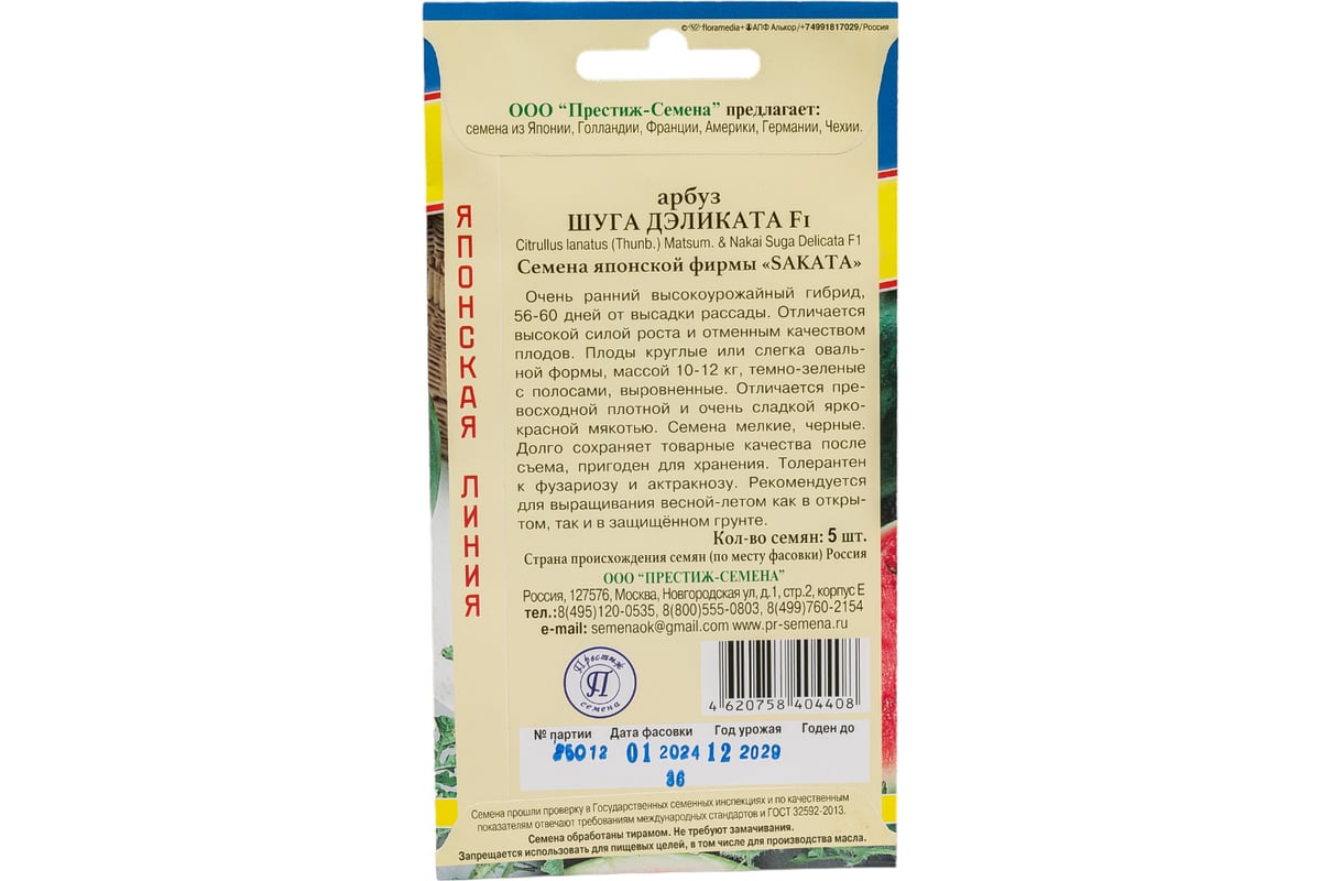 Семена Престиж-Семена Арбуз Шуга Деликата F1 00019888 подходят для выращивания на дачном участке.