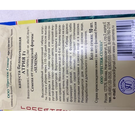 Отзывы о семенах Престиж-Семена Капуста белокочанная Атрия F1 00030605