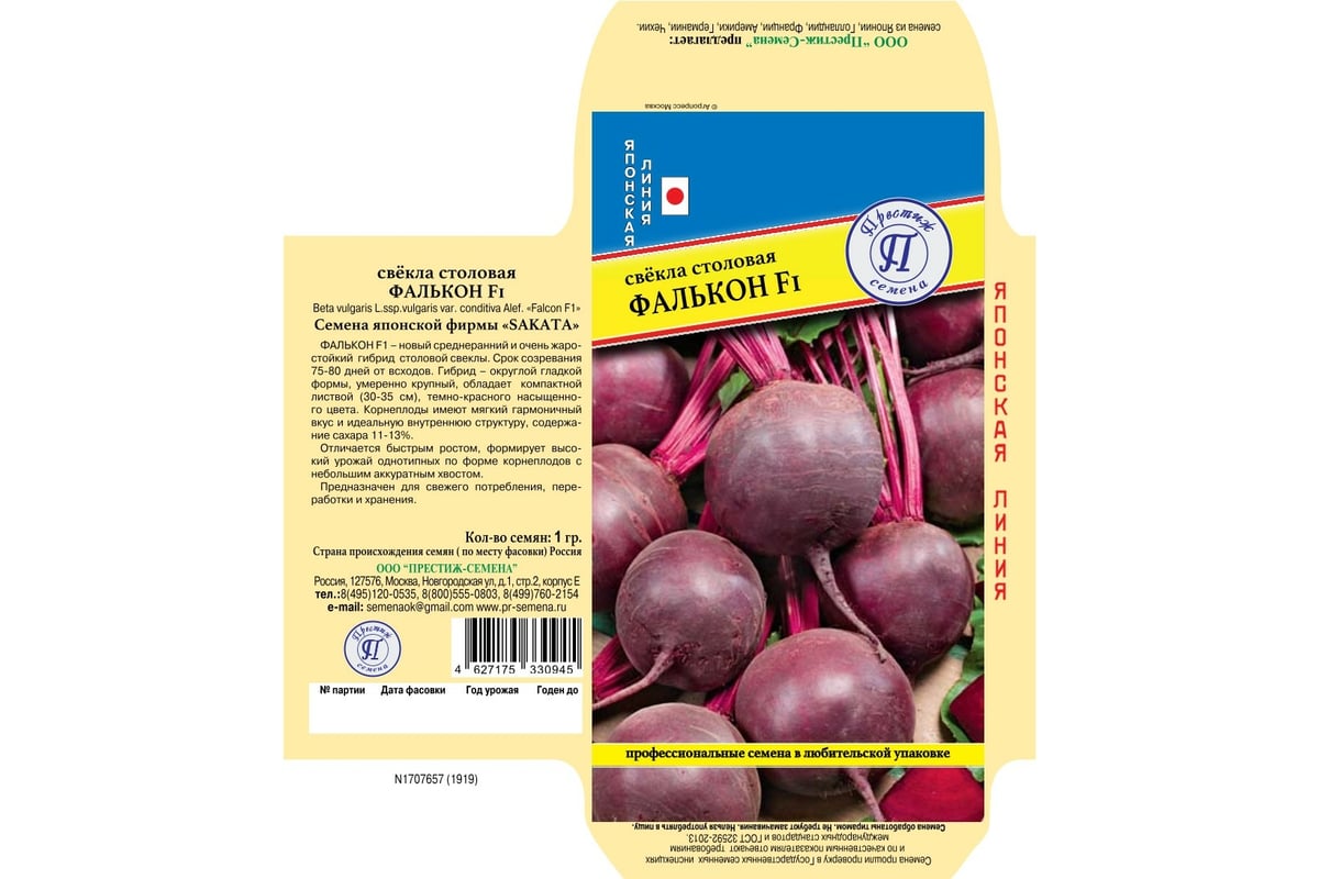 Семена Престиж-Семена Свекла ст.Фалькон F1 00032081 – новый среднеранний и очень жаростойкий гибрид столовой свеклы. Срок созревания 75-80 дней от всходов.