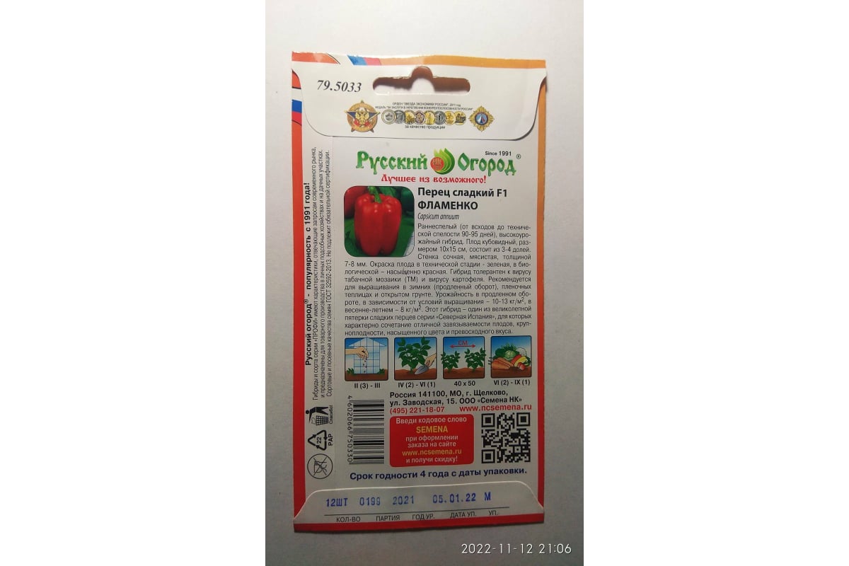 Семена РУССКИЙ ОГОРОД Перец сладкий Фламенко F1 12 шт. 795033 подходят для выращивания на дачном участке.