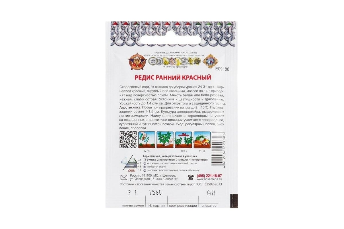 Технические характеристики РУССКИЙ ОГОРОД Ранний красный Кольчуга Е09188