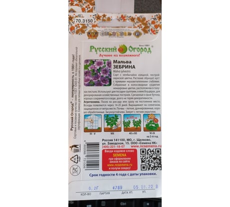 Отзывы о семенах РУССКИЙ ОГОРОД Цветы Мальва Зебрина 0.2 г 703150