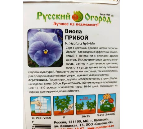 Семена РУССКИЙ ОГОРОД Цветы Виола Прибой 0.1 г 702324 используются при устройстве клумб. Сорт идеален для создания эффектных композиций, исключительно декоративен. Морозоустойчивый двулетник, отличается ранним цветением. Формирует большие цветы - 8 см в диаметре.