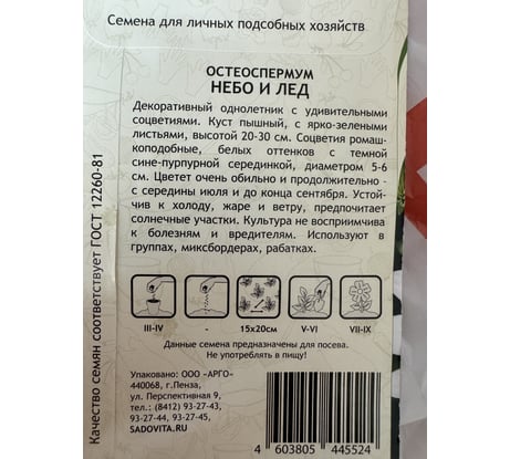 Семена Садовита Остеоспермум Небо и лед 0.1 г 00208020