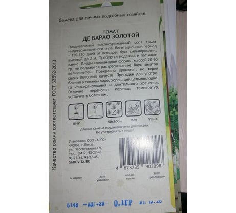 Отзывы о семенах Садовита Томат Де Барао золотой 0.1 г 00216456