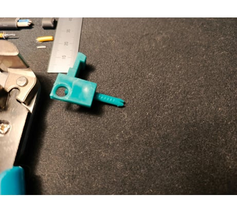 За очень низкую цену пользователь расплачивается плавающим качеством. Не всем может повезти с конкретным экземпляром инструмента. Длина участка снятой изоляции разница в зависимости от скорости сжатия рукояток и позиционирования провода вдоль губок. Последнее связано с непараллельностью режущих кромок губок (фото №4), а непараллельность — с люфтом губок на осях. Очень хлипкий кронштейн ограничителя, в моём случае отломался внутри блистера ещё во время транспортировки до ПВЗ (фото №5).