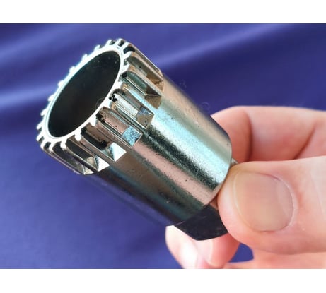 Ключ поможет снять картридж велосипедной каретки. Съемник изготовлен из прочной стали. Инструмент имеет 20 шлицов.
