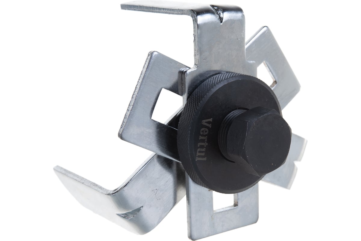 Съемник крышки топливного насоса VERTUL 3х-лапый VR50644 предназначен для быстрого снятия и установки крышек топливных насосов и датчиков уровня топлива. Инструмент применяется под шестигранную торцевую головку или гаечный ключ 24 мм. Модель выполнена из прочного металла с высокой устойчивостью к механическим повреждениям. Рабочий диапазон составляет 75-160 мм.