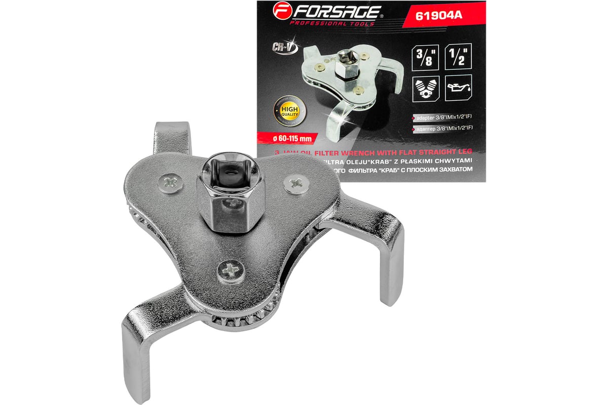 Съемник масляного фильтра Forsage "краб" с "плоским захватом" 3/8"+адаптер 3/8"Мх1/2F диаметр 60-115мм F-61904A(25647)