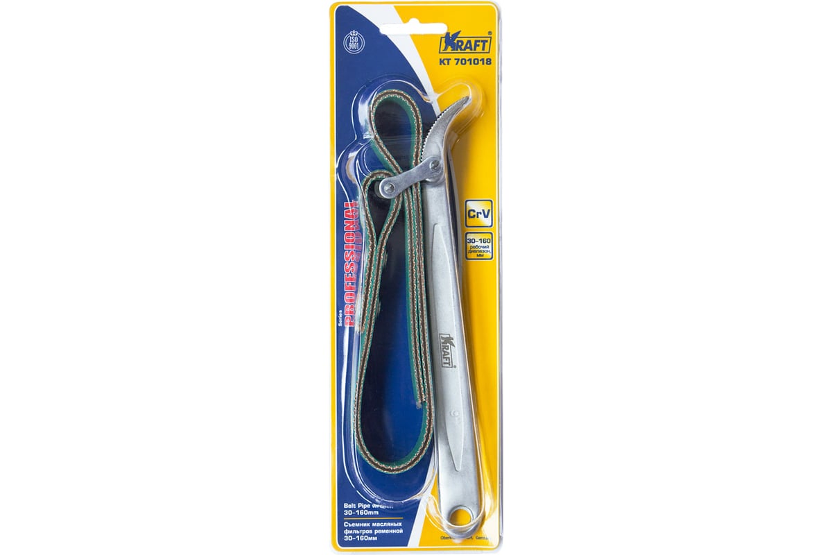 Съемник масляных фильтров KRAFT ременной, 30-160 мм, Cr-V KT 701018 - автомобильный инструмент, который используется для демонтажа масляного фильтра автомобиля. Съемники фильтров для авто - надежный помощник в каждом гараже и автосервисе. Масляная система автомобиля во время эксплуатации испытывает значительные температурные нагрузки.