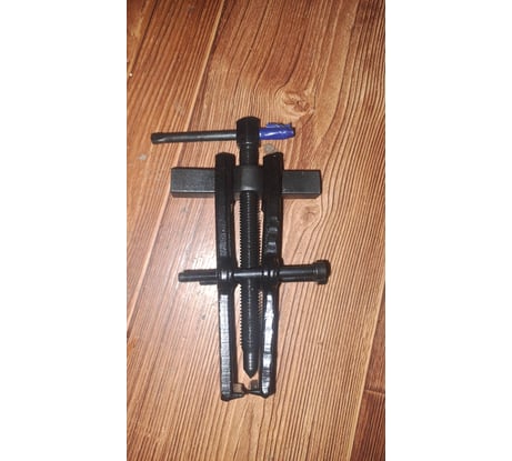 При первом же использовании съемника центрующий наконечник слизался при снятии подшипников с вала электроинструмента, что при дальнейшем снятии усложнило снятие оставшихся подшипников, т.к. стал болт силовой уходить в сторону с вала при снятии подшипников.