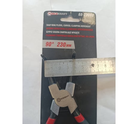 Съемник стопорных колец гнутый на сжатие 230 мм FORCEKRAFT FK-68-230HB. Изгиб 90°. Съемник для внутренних стопорных колец DIN 472 и ГОСТ 13943-86 позволяет быстро осуществлять демонтаж и монтаж пружинных колец. Изготовлен из хромованадиевой стали (CrV) с фосфатным покрытием. Эргономичные двухкомпонентные рукоятки - не скользят. Общая длина съёмника в сжатом состоянии составляет 230 миллиметров. Используется колец диаметром от 50 до 165 миллиметров. Диаметр захватывающих губок составляет 2 мм. Рабочий диапазон 43 - 3 мм. Соответствует международному стандарту качества DIN 5256.