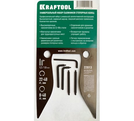 Технические характеристики съемника стопорных колец KRAFTOOL universal 22813