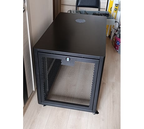 В целом серверный шкаф классный, задумка хорошая, но прислали в повреждённом виде. И внешне шкаф немного отличается.