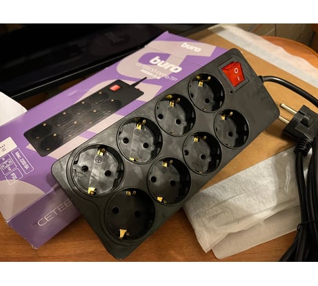Сетевой фильтр BURO 500SH-10-B 10м, 5 розеток, черный, коробка 992303