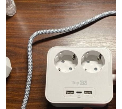 Отзывы о сетевом фильтре TopOn на 2 розетки с 2 USB-A и USB-C, 4000W, 1.5 м Белый TOP-PWS2