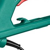 Крепление сетевого шнура Триммер оснащен кабельным зажимом, на который крепится сетевой шнур при работе. Таким образом, шнур не вылетает из гнезда, так как надежно закреплен. |