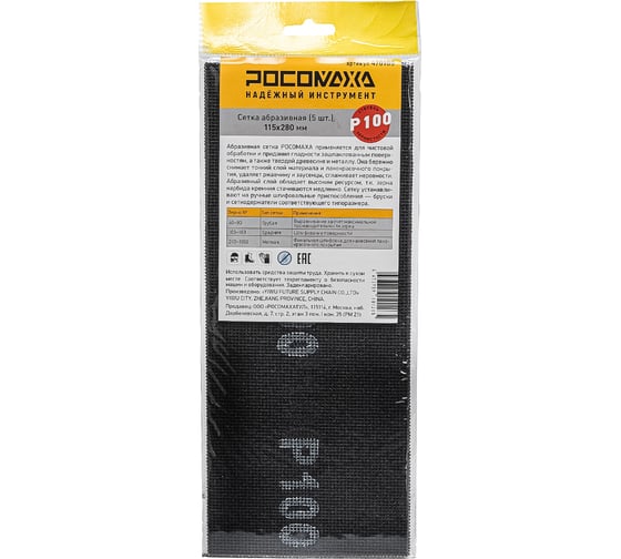 Сетка абразивная РОСОМАХА (5 шт; 115х280 мм; P 100) 470100