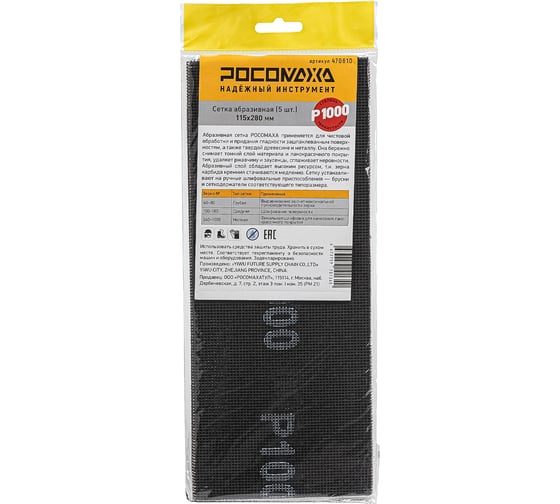 Сетка абразивная РОСОМАХА (5 шт; 115х280 мм; P 1000) 470810