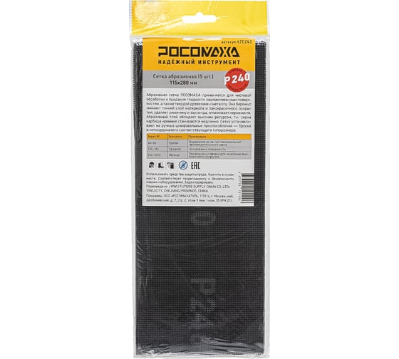 Сетка абразивная РОСОМАХА (5 шт; 115х280 мм; P 240) 470240