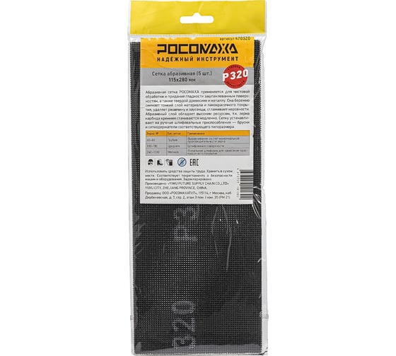 Сетка абразивная РОСОМАХА (5 шт; 115х280 мм; P 320) 470320