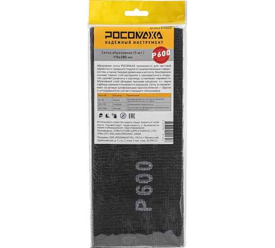 Сетка абразивная РОСОМАХА (5 шт; 115х280 мм; P 600) 470600
