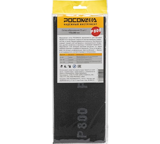 Сетка абразивная РОСОМАХА (5 шт; 115х280 мм; P 800) 470800