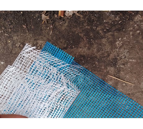 Отличная сетка. Ровно такая, какая и должна быть. Для сравнения я покажу на фотографиях и другую фасадную сетку, белого цвета, другого производителя, которую купил в крупном строительном магазине. Посмотрите на фотографии и сравните. Синяя, X-Glass – это сетка здорового человека, белая – сетка курильщика. Почему купил белую – нужна была срочно, прямо здесь и сейчас, плюс её дефекты стали видны только после вскрытия упаковки.