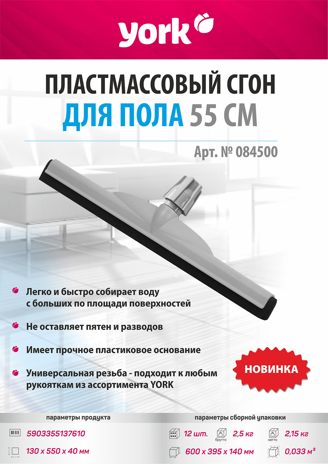 Сгон для пола YORK пластиковый, 55 см 084500 легко собирает лишнюю воду с обширных по площади поверхностей.