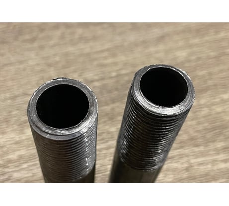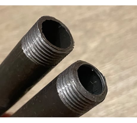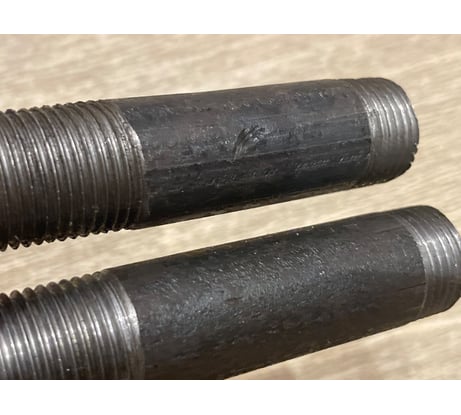 На фото - отмытые сгоны. Пришли в индивидуальных пакетах. Были в защитной смазке (наносимой на металл после прокатного стана) вперемешку с ржавчиной. Для фабричного производства разбег в длине резьбы - так себе.
