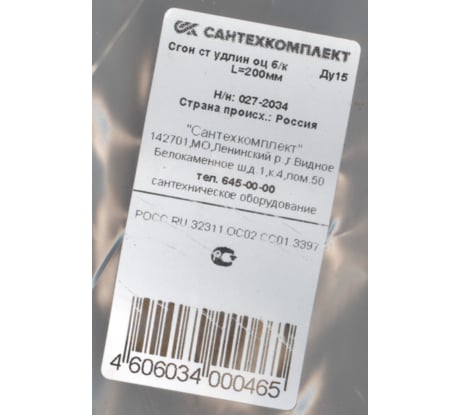 Сгон удлиненный ООО "Крупинский арматурный завод" сталь, оц. б/к Ду15 L=200мм из труб ГОСТ 3262-75 КАЗ 027-2034
