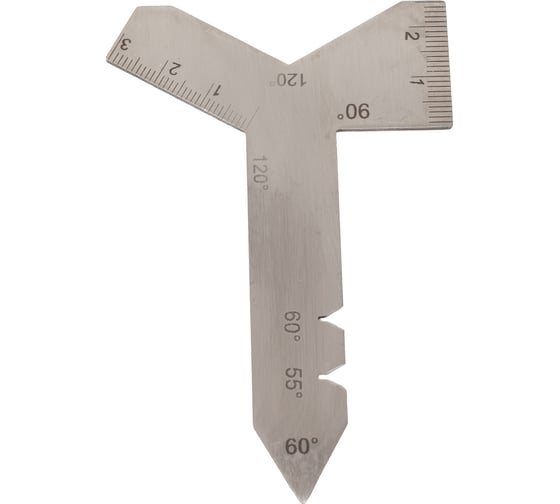 Шаблон для заточки сверл выполнен из нержавеющей стали толщиной 1 мм. Предназначен для визуального контроля угла заточки свёрл с углом вершины 55, 60, 90, 120 градусов. Подходит для сверл диаметром до 60 мм.