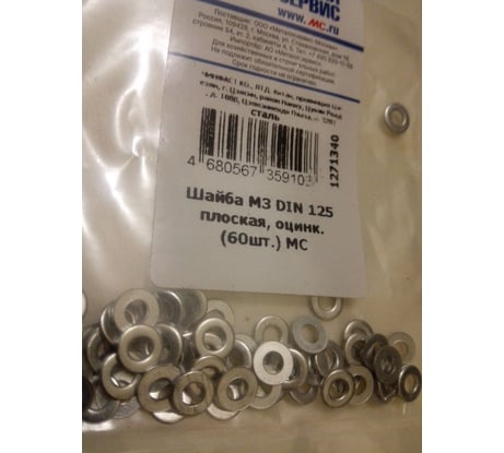 Шайба МЕТАЛЛСЕРВИС M3 DIN 125 плоская, оцинкованный, 60 шт. МС 1271340