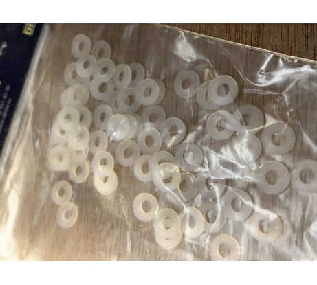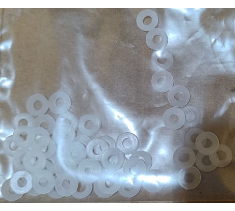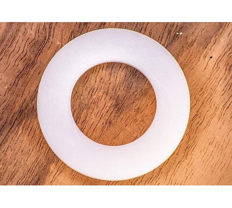 В меру пластичная, в меру жёсткая шайба. Это как раз то качество, которое позволяет закрепить пластиковые элементы сильно, но так, что бы потом не треснули. Из-за белого цвета и небольшого размера фотографию сделать проблематично. Температурный диапазон - подходит для уличного применения.