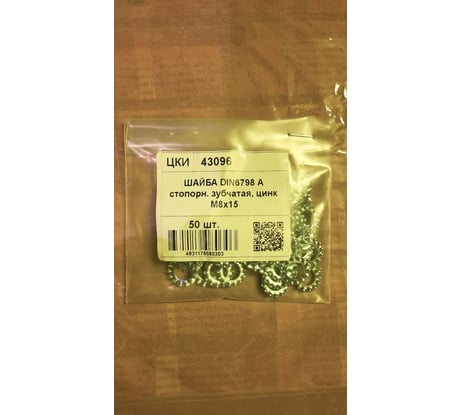 Шайба стопорная ЦКИ DIN6798 A М 8x15 зубчатая Ц 50 шт 43096