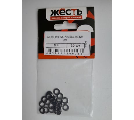 Шайба ЖЕСТЬ DIN 125, А2 нерж. М4 (20 шт), европодвес УТ-00009400