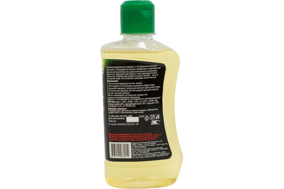 Шампунь с полиролью 250 мл RUNWAY RW2505 имеет в составе натуральный воск карнаубы, благодаря чему поверхность приобретает блеск без дополнительной полировки. Отлично подойдет для любого типа лакокрасочного покрытия. Прекрасно растворяется в теплой и в холодной воде. Не оставляет разводов после использования.