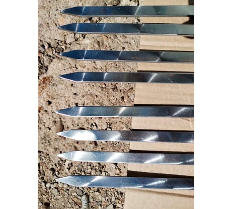 Сам по себе товар в таком виде-один сплошной недостаток. Не знаю кто пишет отзывы про отличные шампуры и тд. Наверное сам продавец! Чтобы можно было ими хоть как то пользоваться нужно взять каждый шампур, снять с него острый облой по всей длине, об который вы порежетесь, отшлифовать поверхность (они коцаные все), а самое главное выравнить концы и их заточить. Заготовки тупые напрочь. Вас встречает 3 мм тупого конца металла. Вишенка на торте-они в каком то мазуте. Пока осматривал в пункте выдачи-перепачкал руки в какой-то черной смазке. В общем одно недоразумение. Знал что брал. Поэтому буду доводить до ума. По толщине нормальные, но и вроде как нержавейка (как заявлял продавец в др. месте, сталь AISI 403). У кого руки растут из нужного места и есть неск. часов для обработки заготовки до норм.человеческого вида шампура, то можно взять. В другом случае не тратьте деньги и время! Все так же как на этих фото.