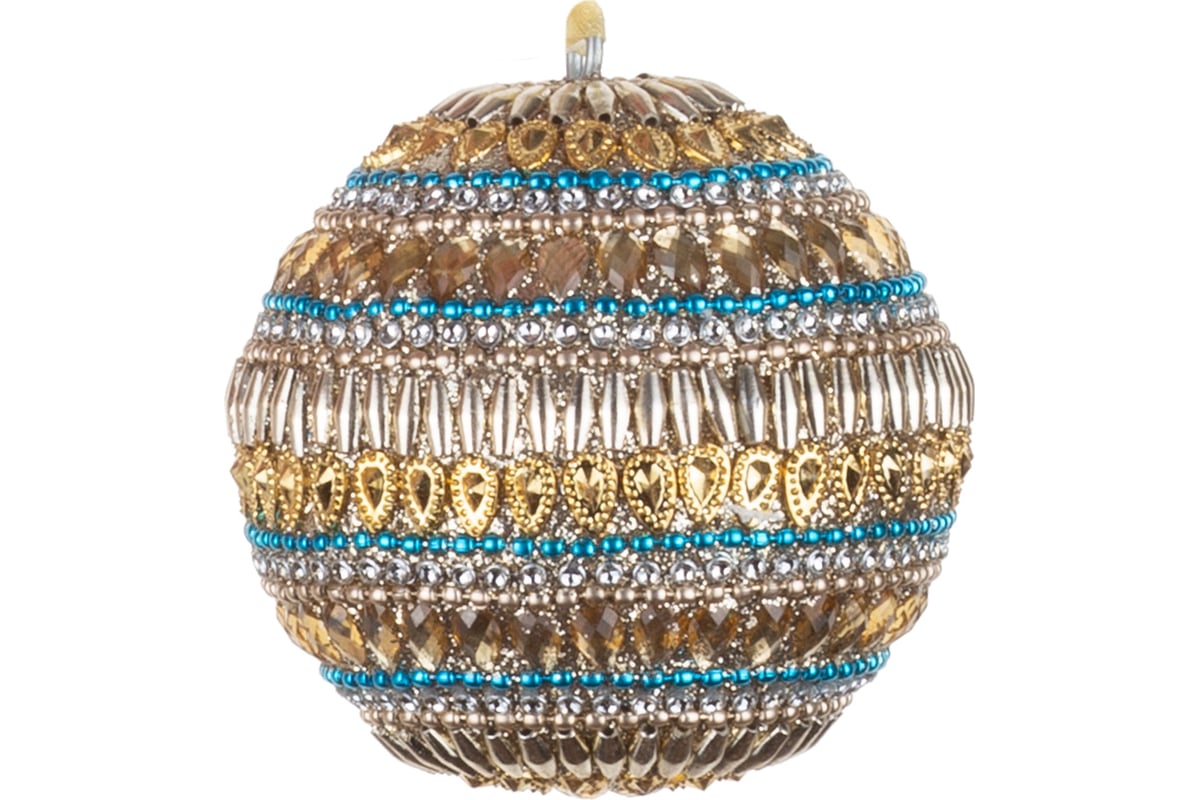 Шар Karlsbach золотой с орнаментом синими бусинами 7 см 4 шт. 10886 предназначен для украшения новогодней елки.