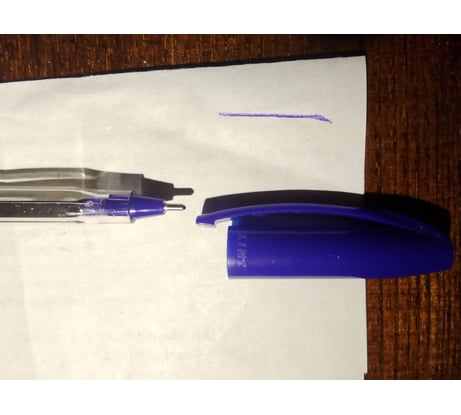 Цвету чернил соответствует цвет наконечника и колпачка ручки.