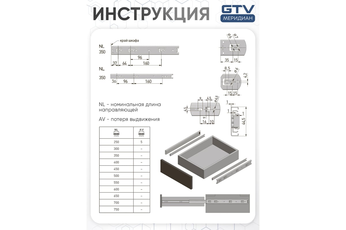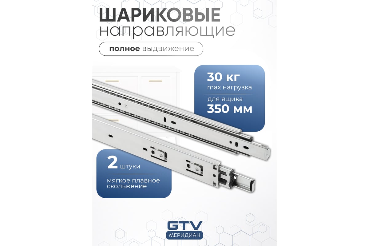 Шариковые направляющие полного выдвижения GTV 45х350 мм PK-0H45350GX