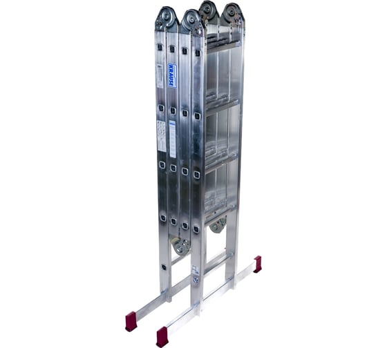 Шарнирная стремянка-трансформер универсальная Krause 5+4+4+5 085078 состоит из четырех секций. Может использоваться в качестве стремянки, либо как приставная лестница, либо как платформа. Компактна и легко складывается. Удобна для хранения и транспортировки. Широкие поперечные траверсы со специальными заглушками делают лестницу устойчивой, исключая скольжение. Нескользящие опорные насадки траверсы.