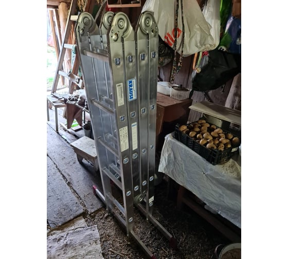 стремянка мне нравится. Железо прочное. Конструкция надежная. Были случаи, что маловато было длинны лестницы. Но как подумаешь сколько надо доплатить чтобы взять более длинную и сколько она будет весить, сразу понимаешь, что данный вариант самый оптимальный для дома и огорода.