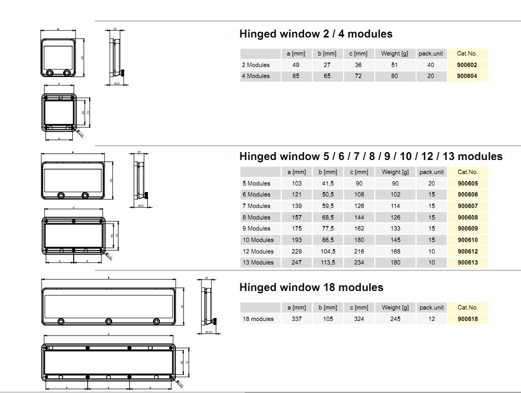 Шарнирное окно PCE на 10 модулей с дымчатым окном IP67 900610s-p