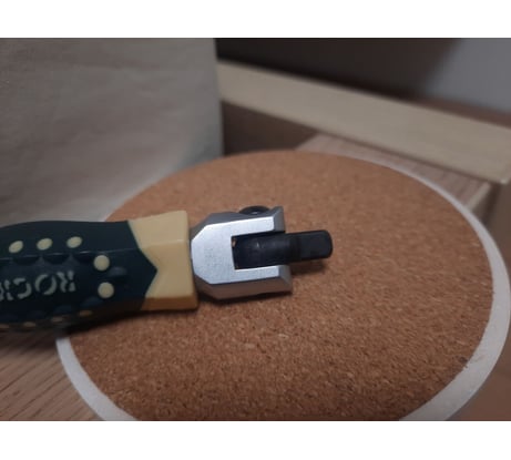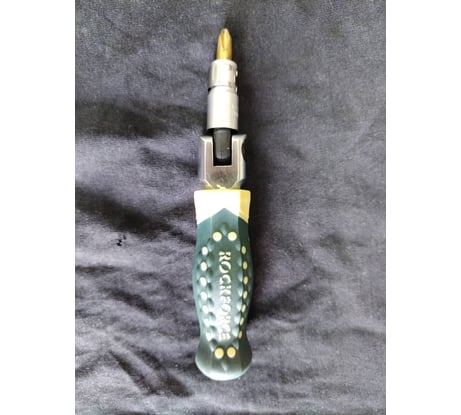 В прямом положении подпружинен шариком, поэтому удобно использовать как отвёртку.